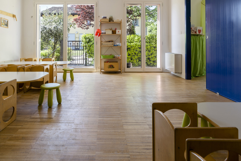 Disponiamo di due sale dotate di luce naturale una delle quali si affaccia direttamente sul giardino e di un ampio parco che si utilizza nella bella stagione.